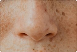5mm程の小さな茶色い斑点が鼻のまわりを中心に両頬や額など広範囲に現れます。遺伝的要因が強いものですが、紫外線により悪化することもあります。