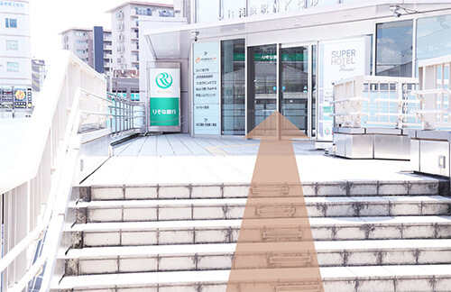 1階がセブンイレブン、4〜10階がスーパーホテルです。2階の自由通路よりご来院ください。