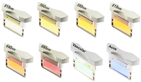 515、560、590、615、640、695nmの基本フィルターに加え、毛細血管拡張専用、にきび専用の計8種類のフィルターから治療ニーズ、肌の悩み、肌質、肌の色、部位に合わせて選択・複合的に使用することで、オーダーメイドの美肌治療が可能となります。