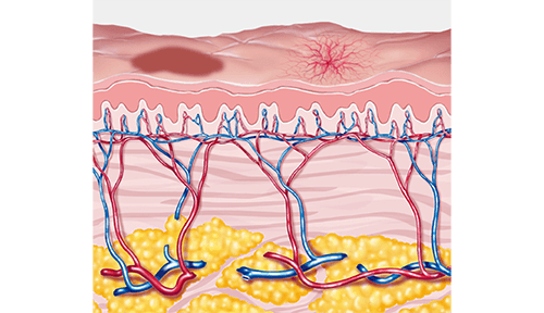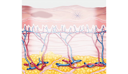 強力な光をシミの波長だけでなく、毛細血管の波長も同時に出すことができますので、赤ら顔を含めた血管病変を効果的に破壊し、シ肌表面の赤みを目立たなくして、赤ら顔を改善することができます。