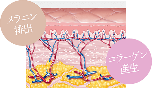 コラーゲン生成も活性化しますので、皮膚の保水力が高まり肌にハリが生まれ、気になる小じわを改善、毛穴の開きも目立ちにくくなります。