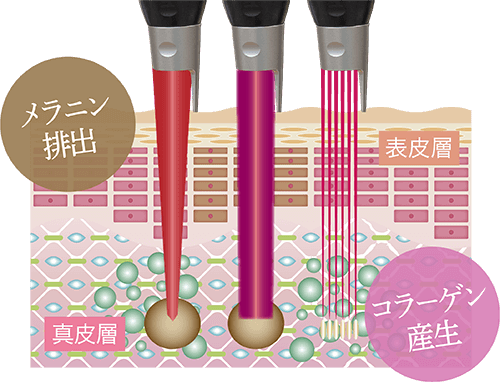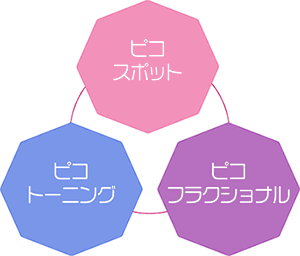3種類の照射方法(ピコスポット・ピコトーニング・ピコフラクショナル)を組み合わせることで、幅広いお肌の悩みに対応することもできます。